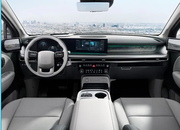 내부 인테리어: 내부는 고급스러운 소재와 함께 최신 기술이 적용된 디지털 대시보드가 특징입니다. 대형 터치스크린과 음성 인식 기능이 탑재되어 직관적인 조작이 가능합니다. 또한, 넉넉한 실내 공간과 적재공간은 가족 단위 사용자에게도 적합합니다.