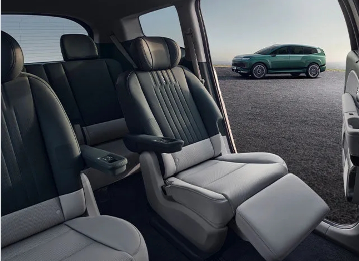 아이오닉 9은 전장 5,060mm, 축간거리 3,130mm, 전폭 1,980mm, 전고 1,790mm로 넓은 공간이 큰 특징입니다.